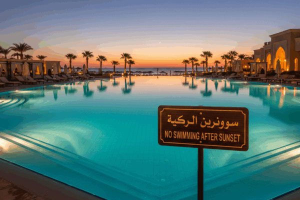 Možná to znáte. Po celém dni na egyptském slunci se večer konečně ochladí na příjemnou teplotu. Hladina moře vypadá lákavě a osvětlený bazén přímo volá po nočním ponoření. Jenže tu je to známé, striktní pravidlo: Po západu slunce se nekoupejte. Proč se ale toto pravidlo drží v každém hotelu tak pevně? Není to jen rozmar…